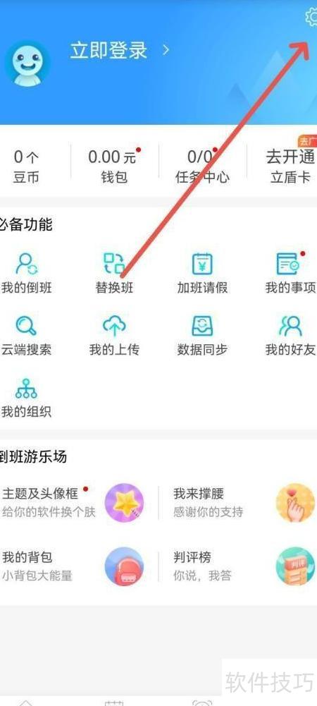 1、 打开倒班助手应用,进入个人中心,点击右上角设置图标。