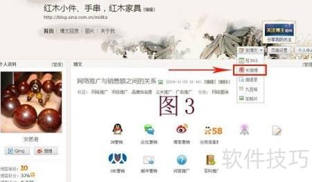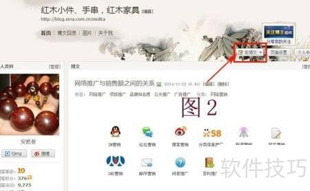 访问新浪首页或博客页面,登录账号后进入个人博客空间,具体操作1所示。