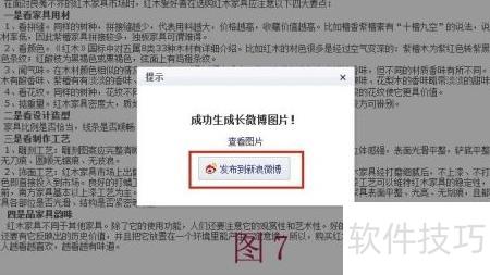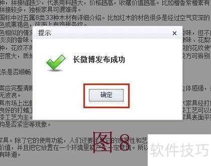5、 点击生成长微博后会出现提示,接着选择发布到新浪微博,系统将弹出发布成功的消息,确认即可完成操作,具体步骤7和图8所示。