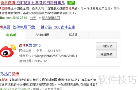1、 在搜索页查找新浪微博,点击进入其官方网站。
