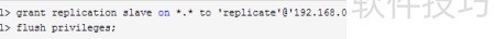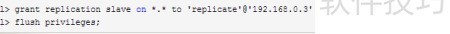 1、 在主服务器上为从服务器创建一个用于复制连接的专用账户,并赋予其replication slave权限。由于服务器A与B互为彼此的主从,因此双方均需各自建立一个用于数据同步的用户账号。