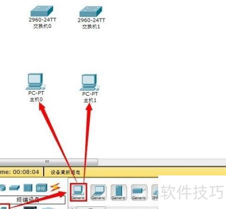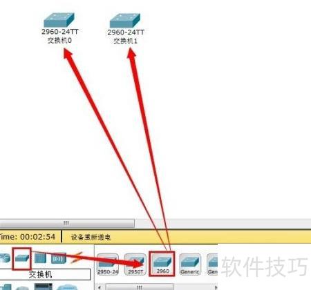 1、 启动Cisco Packet Tracer,选择类别中的2960型号,按住鼠标左键将其拖入工作区域。软件提供多种交换机类型,本次先以2960为例进行操作,其余型号将在后续逐步介绍其使用方法。