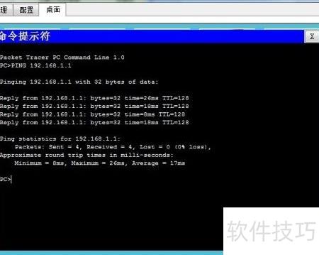 5、 在主机1执行ping 192.168.1.1测试,结果显示网络连接正常。