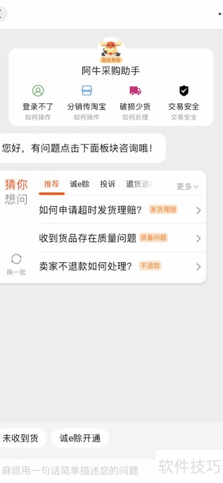 使用阿里巴巴软件遇到问题可联系客服,接下来将介绍如何进入阿牛采购助手的操作方法。