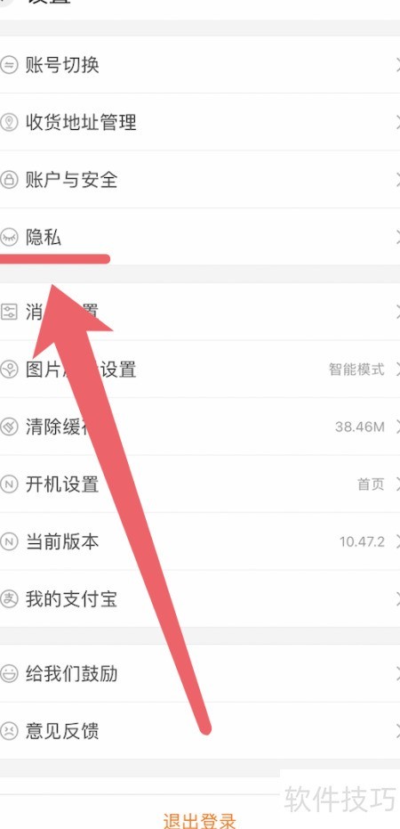 4、 进入设置,选择隐私选项