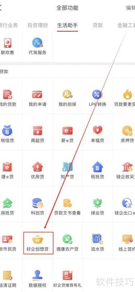 2、 在全部功能页面找到好企创想贷并点击即可办理。