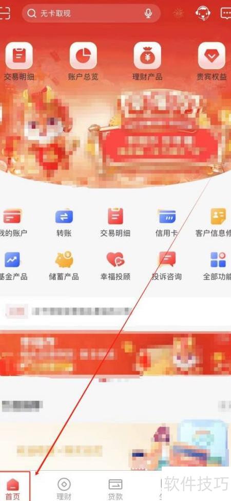 1、 打开重庆银行,点击首页图标即可进入。