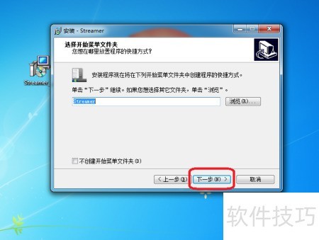 6、 进入开始菜单文件夹界面,保持默认设置,点击下一步继续操作。