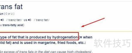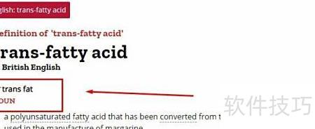 3、 该词组另有拼写方式trans-fatty acid,与trans fat含义相同,属同义表达,具体可见下图所示。