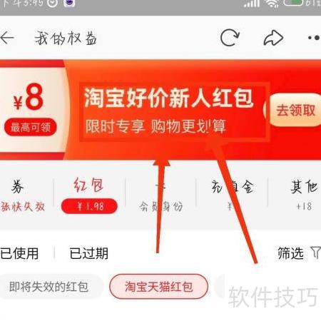 2、 打开淘宝页面,点击红包即可。