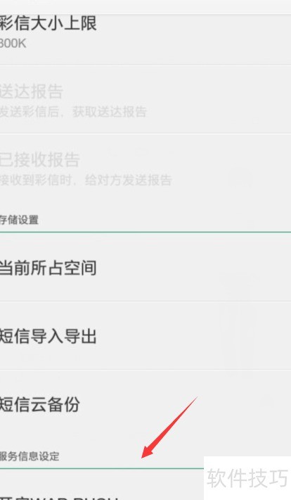 6、 请打开设置中的WAP PUSH开关,具体操作所示,确保功能已启用。