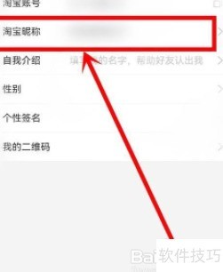 3、 进入个人资料页面,选择并点击淘宝昵称。