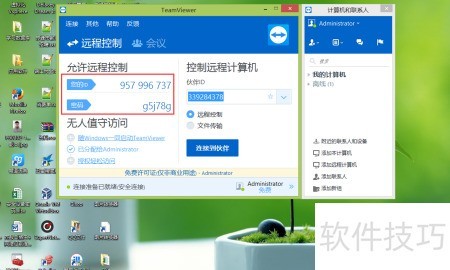 2、 打开TeamViewer软件,查看并记录显示的ID号码。