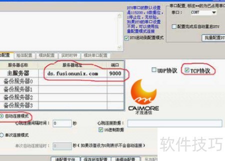 12、 所示,在COMWAY GPRS DTU配套的配置软件中,设置COMWAY DATA-SERVER的服务器地址。