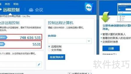 2、 打开电脑版TeamViewer,记录下ID为748616531,密码为5531。