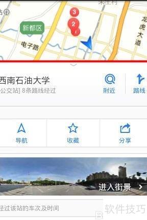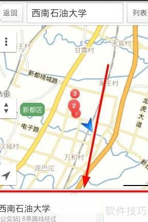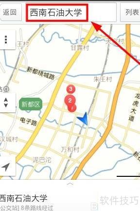 2、 输入你要查询的地点,例如西南石油大学,所示操作即可。
