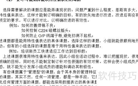 5、 可从以下方面寻找具体问题:一是完成生产任务和考核指标中的难点;二是生产线管理薄弱环节;三是长期影响生产的顽固问题。通过分析这些方面,确定需解决的关键课题。