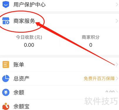 1、 打开支付宝iOS版,进入个人中心选择商家服务。