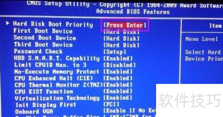 8、 进入硬盘启动顺序选项并按下回车键确认。