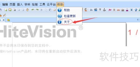 4、 返回上一步,进入帮助菜单中的关于目录,即可查看当前软件的版本信息。