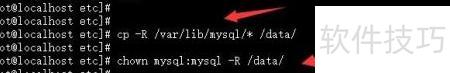 3、 将MySQL数据文件复制或移至新存储目录,并调整该目录的访问权限。