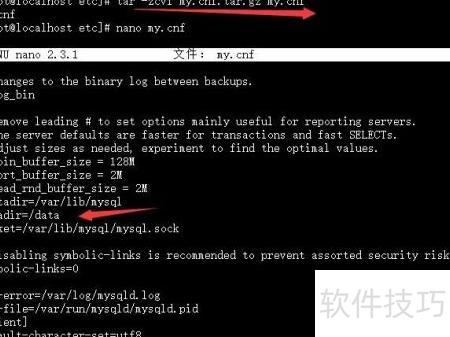 4、 修改MySQL数据库配置文件中的默认存储路径至新目录,操作前请务必备份原配置文件,以防配置错误导致服务异常。