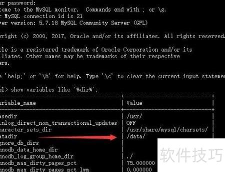 1、 连接MySQL数据库服务器,查询默认的存储目录路径。