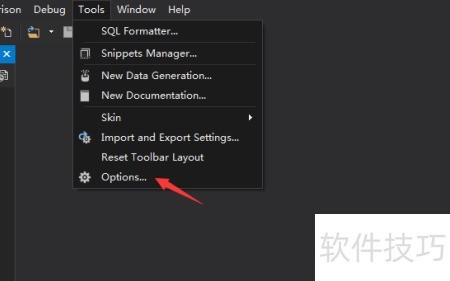 2、 点击下拉菜单,选择options项。