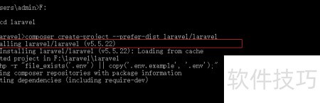 6、 运行命令:composer create-project --prefer-dist laravel/laravel,创建 Laravel 项目,优先使用压缩包方式下载依赖。