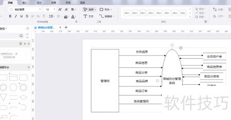 4、 通过插入模板绘制商城后台管理系统数据流图,直观展示系统数据流转与处理过程。