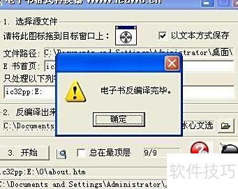 4、 转换迅速完成,随即弹出提示窗口:电子书反编译完毕,所示。