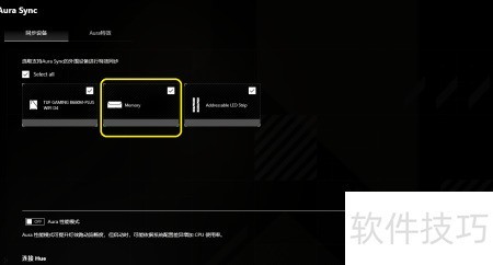 6、 打开奥创软件,找到内存灯光同步选项,取消勾选即可。