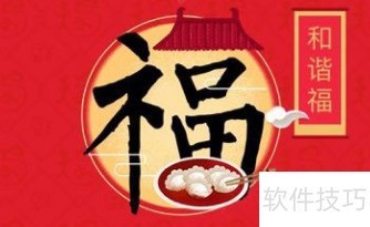 8、 福字顶部横笔化作古风屋檐,田下融入饺子图案,旁置一双筷子,整体设计巧妙呼应和谐福的主题意蕴,展现传统节庆的团圆氛围。