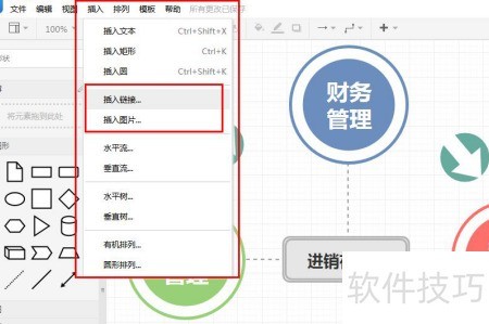 5、 在上方栏目中可添加链接、图片等内容至流程图。
