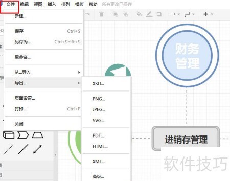 6、 流程图完成后,点击文件菜单中的导出选项,选择所需格式即可保存。