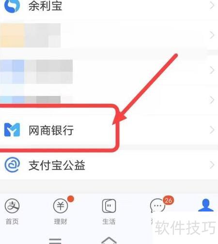 1、 进入支付宝我的页面,点击顶部网商银行图标。