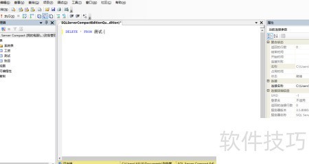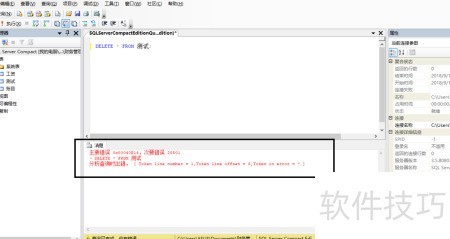 4、 执行DELETE * FROM 测试;时,软件提示语法错误。