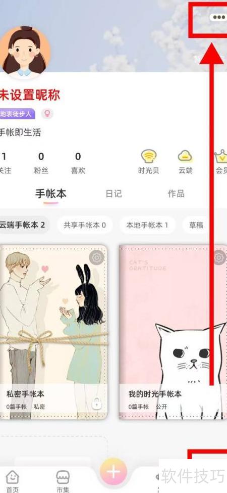 1、 打开时光手帐,进入我处蹲的,点击右上角图标即可。