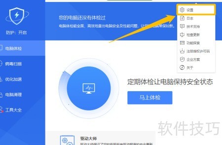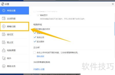 3、 进入设置页面后,选择左侧菜单中的病毒扫描功能。