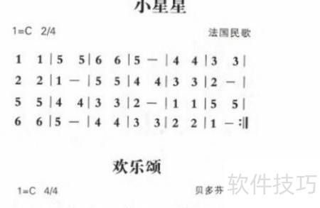 9、 寻找喜爱歌曲的简谱,初学者可从简单曲目入手练习。