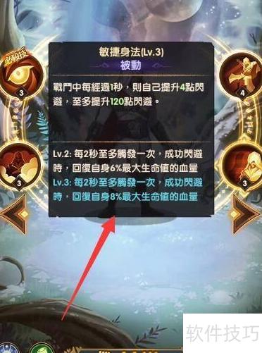 4、 技能四为敏捷身法,战斗中随时间推移提升闪避能力。
