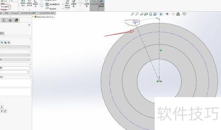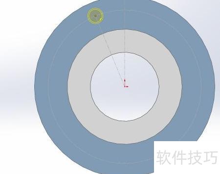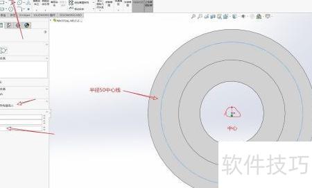 2、 选用画圆功能,以旋转体中心为圆心绘制半径50毫米的圆,具体见图示。