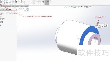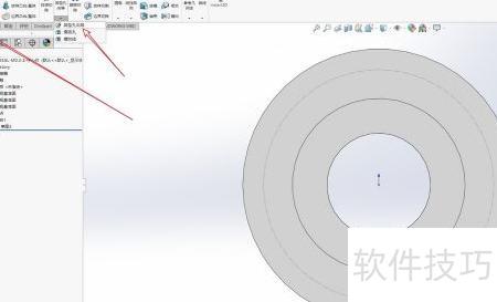 1、 打开上次绘制的旋转体,选取一端平面作为草图基准面,参照图示操作。