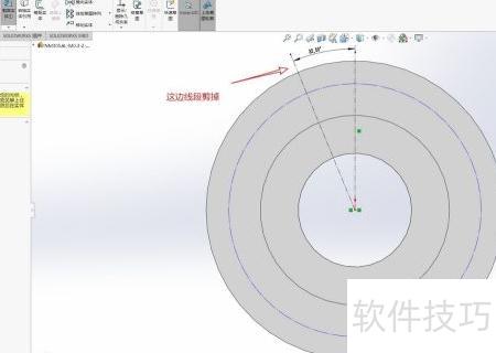 3、 绘制22.5度中心线夹角,剪除多余线条,完成草图后退出。
