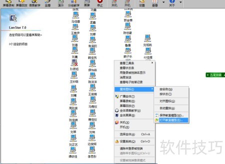 1、 启动电子教室软件后,正常显示机号与登录名,为便于管理,需按座位方向调整虚拟机标识排列顺序。