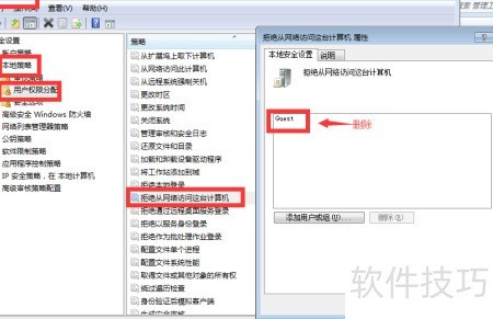 4、 在学生机上打开计算机→网络,检查能否访问教师机。若出现无法访问的提示,只需在安全策略中移除guest账户即可解决问题。