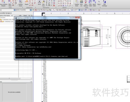 3、 转换后打开文件,发现该操作将UG工程图与模型关联一并转换。