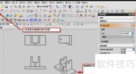 4、 添加主视图,投影所需视图,合理布置轴测图。