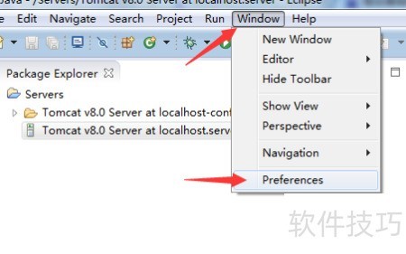 1、 所示,先点击菜单中的Window→Preferences,随后将弹出一个设置窗口。