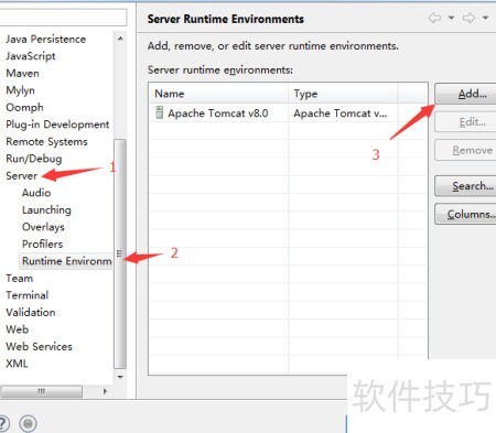 2、 选择服务器,进入运行环境,点击添加按钮。